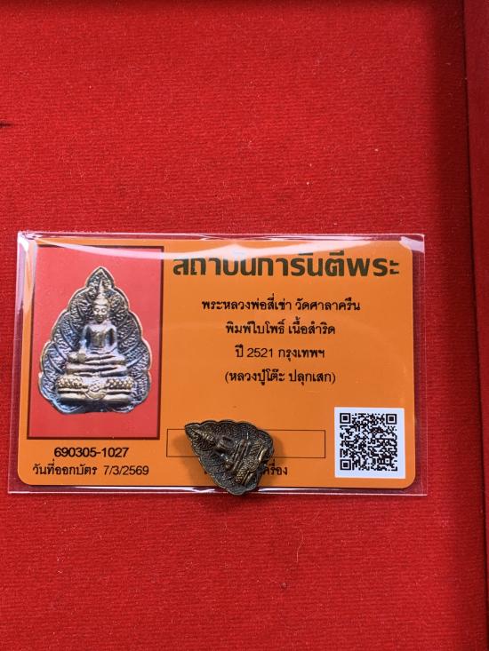 พระหลวงพ่อสี่เข่า วัดศาลาครืน ปี 21 เนื้อสําริด พิมพ์ใบโพธิ์ตอกโค๊ด นิยม มาพร้อมบัตรรับรองครับ