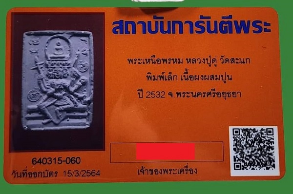 พรหมเกษา หลวงปู่ดู วัดสระแก ปี 2532 มาพร้อมบัตรรับรองครับ