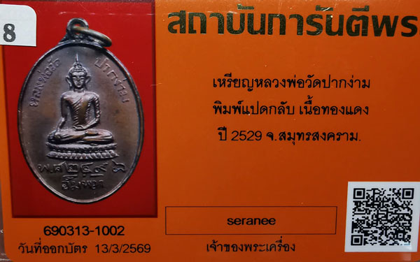 เหรียญพระพุทธ วัดปากง่าม พิมพ์แปดกลับ เนื้อทองแดง ห่วงเดิม ปี2498 จ.สมุทรสงคราม + บัตรG-pra สภาพสวยเดิมค่ะ สภาพตามรูปทุกประการค่ะ