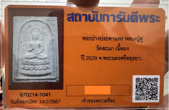 สมเด็จประทานพร เนื้อผงโขลก หลวงปู่ดู่ วัดสะแก ปี 2529 มาพร้อมบัตรรับรอง