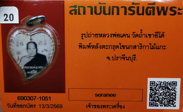 รูปถ่ายหลวงพ่อเคน วัดถ้ำเขาอีโต้ พิมพ์หลังตะกรุดไซนกสาริกาไม้แกะ เลี่ยมเดิม จ.ปราจีนบุรี + บัตรG-pra สภาพเดิมค่ะ สภาพตามรูปทุกประการค่ะ
