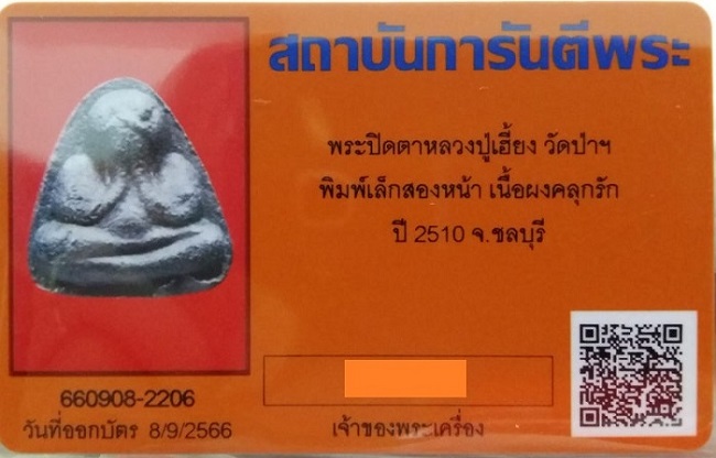 พระปิดตา หลวงปู่เฮี้ยง พิมพ์ 2 หน้า หายาก มาพร้อมบัตรรับรอง