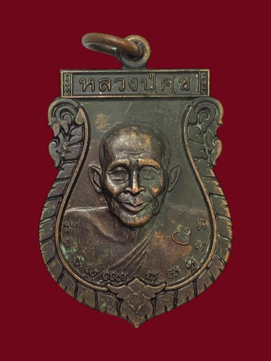 เหรียญเสมาหลวงปู่ศุข วัดปากคลองมะขามเฒ่า - หลวงพ่อเคลือบ พระครูวิจิตรชัยการ วัดบ่อแร่อำเภอวัดสิงห์จังหวัดชัยนาทสร้างปี 2556 ด้านหน้าเป็นยันต์คาถา นวหรคุณ