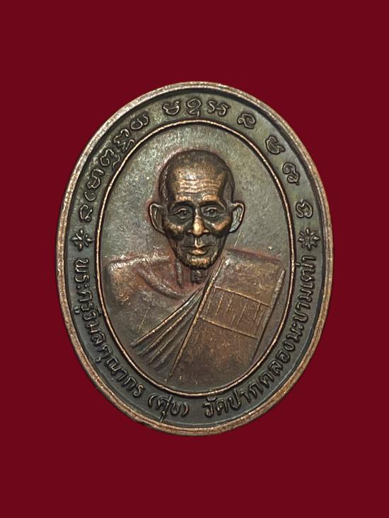 เหรียญ หลวงปู่ศุข วัดปากคลองมะขามเฒ่า รุ่น พุทธคุณ ปี 2537 " หลวงพ่อดี วัดพระรูป " พร้อมเกจิดังในยุคร่วมปลุกเสก อาทิ หลวงพ่อเอียด วัดไผ่ล้อม , หลวงพ่อรวย วัดตะโก , หลวงพ่อเพิ่ม วัดป้อมแก้ว , หลวงพ่อพูน วัดบ้านแพน , หลวงพ่อวิทยา (หลวงพ่อตี๋) วัดท่ามะกรูด จ.สุพรรณบุรี , หลวงพ่อฮวด วัดดอนโพธิ์ทอง สุพรรณบุรี , หลวงปู่แย้ม วัดสามง่าม , หลวงปู่เครื่อง วัดสระกำแพงใหญ่ ฯลฯ เป็นเหรียญเนื้อทองแดง สภาพสวย |