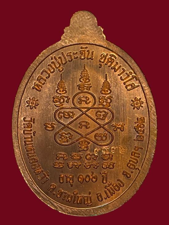 วัดใจ@ เหรียญตอก 1 รุ่นแรก หลวงหลวงปู่ประจัน ชุติมาวังโส วัดบ้านหนองหว้า ต.ขามใหญ่ อ.เมือง จ.อุบลราชธานี อายุวัฒนมงคล 106 ปี พ.ศ.2562 เนื้อทองแดงลงยา