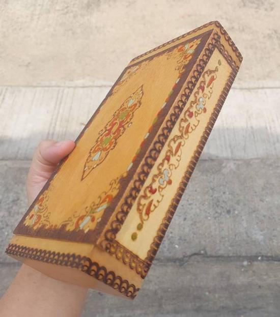 กล่องไม้ขนาด 8.7 X 3.5 นิ้วหนา 1.5 นิ้วเป็นงานหัตถกรรมที่มีความละเอียดอ่อน เก่าสะสม