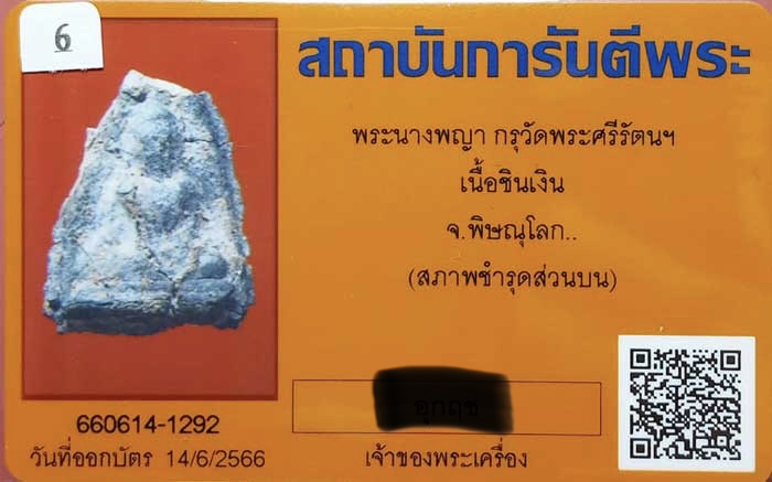 พระนางพญา กรุวัดพระศรีรัตนฯ (นางวัดใหญ่) เนื้อชินเงิน จ.พิษณุโลก พร้อมบัตรรับรองจากจีพระ