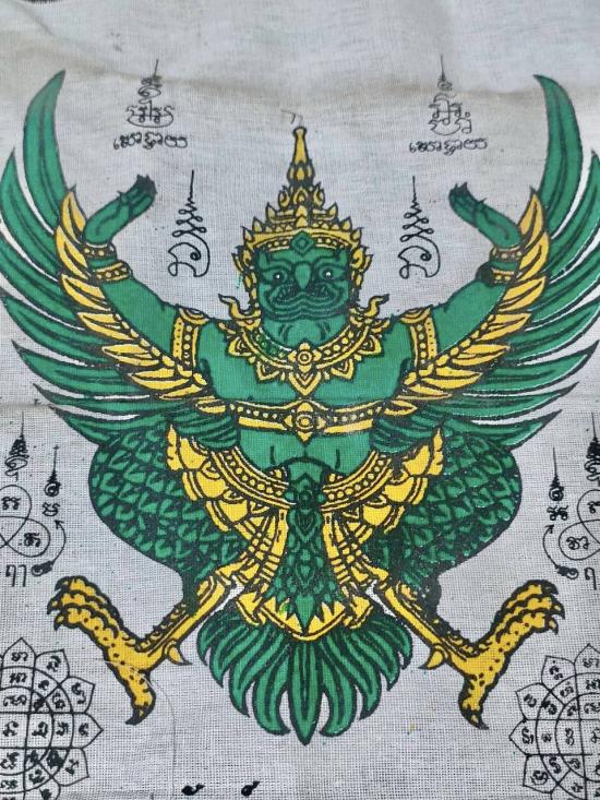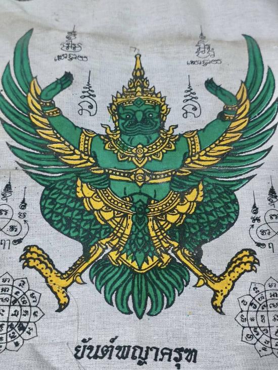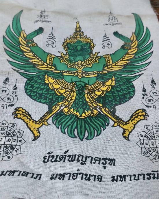 ผ้ายันต์พญาครุฑ มหาลาภ มหาอำนาจ มหาบารมี หลวงพ่อฟู วัดบางสมัคร จ.ฉะเชิงเทรา ขนาดกว้าง 24 ซม X ยาว 30 ซม.