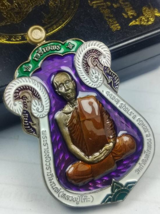 เหรียญเจริญพร พิมพ์เสมา ตอกนำฤกษ์ พิเศษ เนื้อมหาชนวนมวลสารพื้นม่วง ขอบขาว กนกสามสี สร้าง 9 เหรียญ หมายเลข 1 หลวงปู่โต๊ะ วัดถ้ำสิงโตทอง จ.ราชบุรี พร้อมกล่อง |