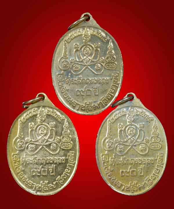เหรียญ 3 สุดยอดคณาจารย์ ที่ระลึก 90 ปี โรงเรียนราชสีมาวิทยาลัย หลวงปู่นิล , หลวงพ่อคง , หลวงพ่อคูณ ( เนื้อทองฝาบาตร ) พ.ศ.2535 ( รับพระ 3 เหรียญ ) ** 3 **