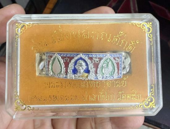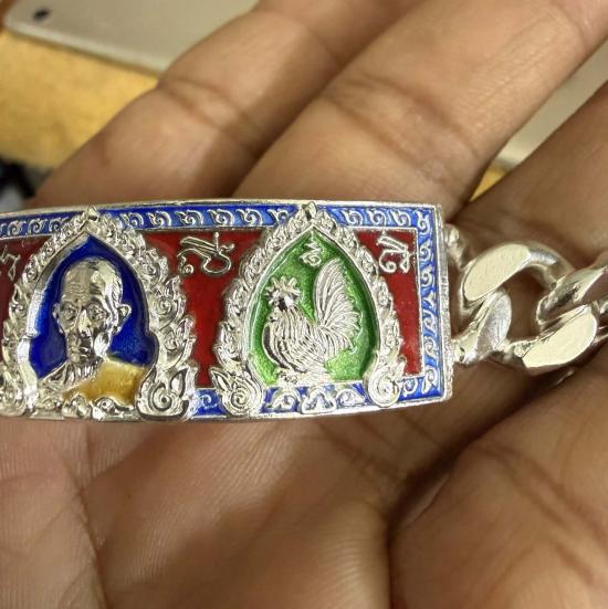 หลวงพ่อรวย วัดตะโก จ.อยุธยา เลสข้อมือ รุ่นเลื่อนสมณศักดิ์ ปี2559 เนื้อเงินลงยา ขนาด4บาท นิยม