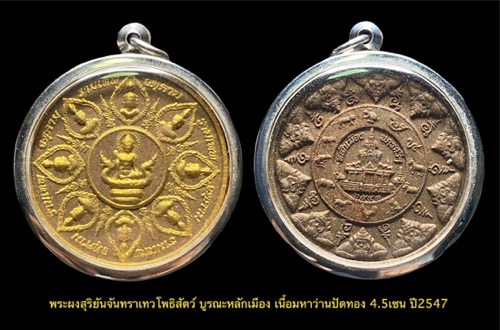 พระผงสุริยันจันทราเทวโพธิสัตว์ บูรณะหลักเมือง เนื้อมหาว่านปัดทอง 4.5เซน ปี2547 เคาะเดียว