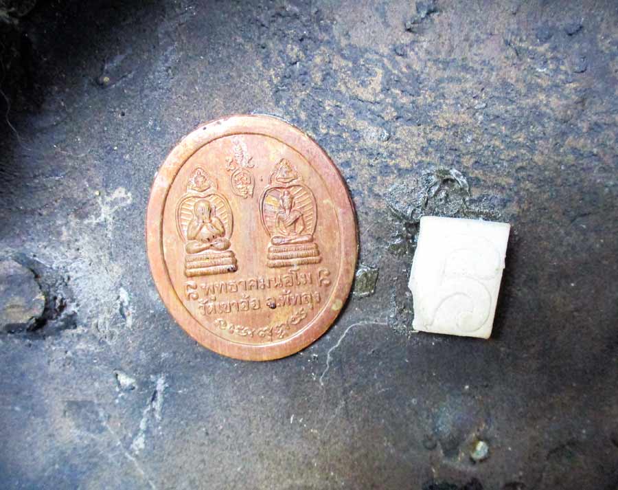 ภาพใต้ฐาน....ติดเหรียญ พุทธาคมวัดเขาอ้อ จ.พัทธลุง / ติดพระผง ยันต์ นอโม