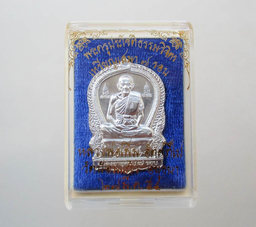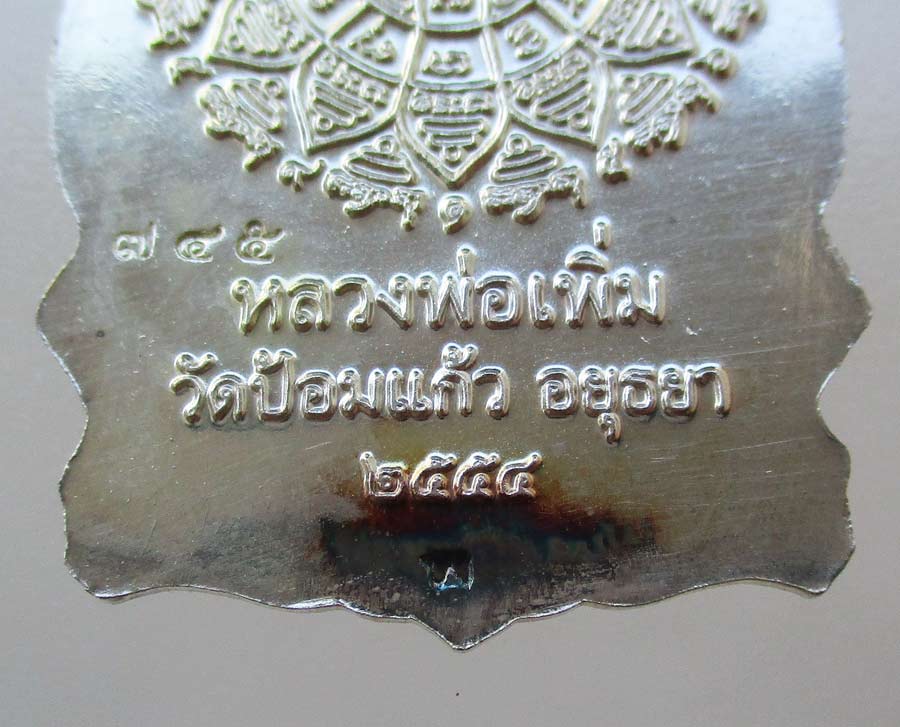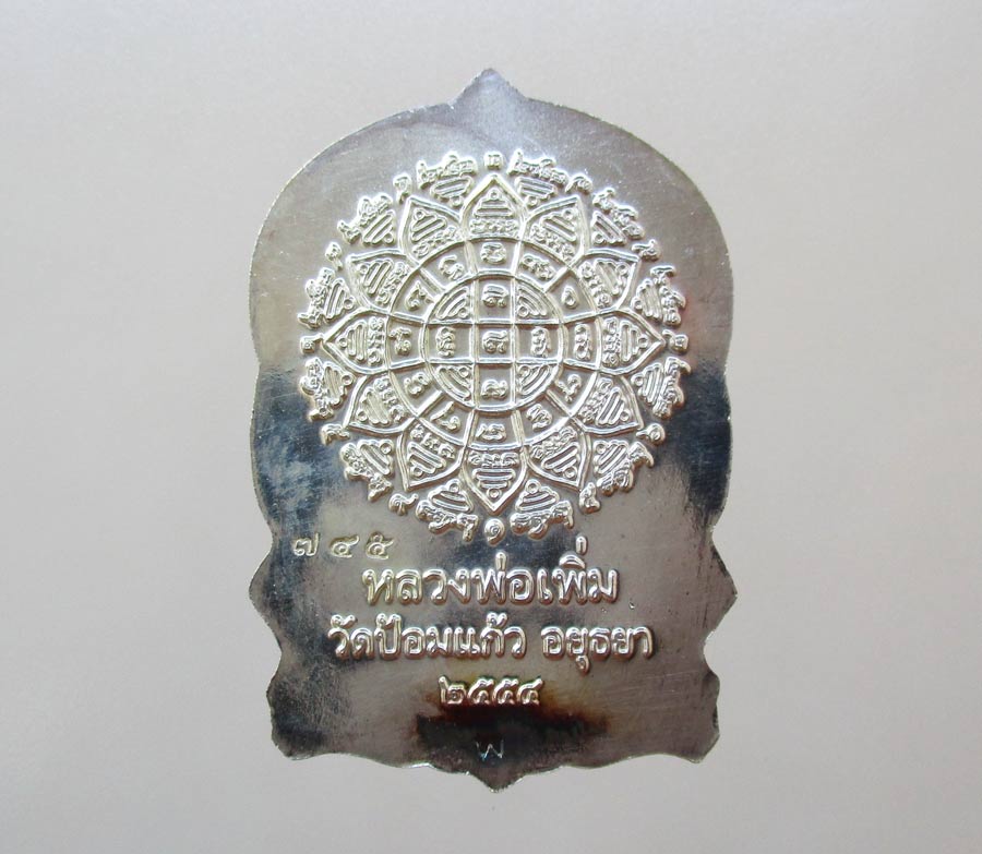 เหรียญเสมา 7 รอบ หลวงพ่อเพิ่ม วัดป้อมแก้ว จ.อยุธยา พ.ศ.2554 เนื้อเงิน สภาพสวย ตอก 2 โค๊ต ตอกเลข บัตรรับรองพระแท้จากสถาบันการันตีพระ บรรจุในกล่องเดิม !!