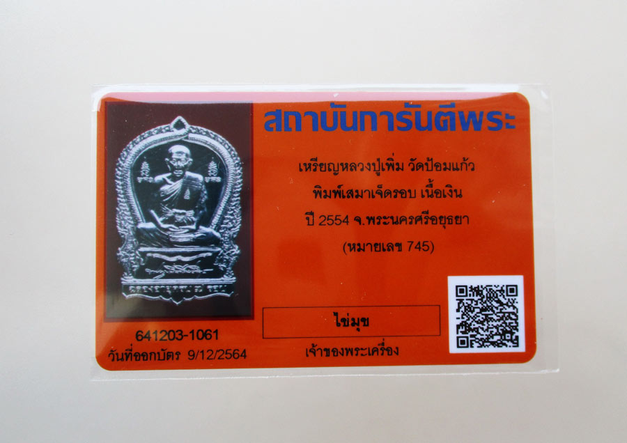 พร้อมบัตรรับรองพระแท้จากสถาบันการันตีพระ !!