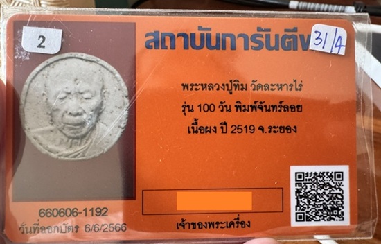 จันทร์ลอย 100 วัน หลวงปู่ทิม เลี่ยมกันน้ำพร้อมใช้ มาพร้อมบัตรรับรอง