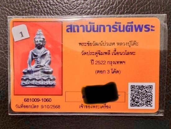 พระชัยวัฒน์ปวเรศ หลวงปู่โต๊ะ วัดประดู่ฉิมพลี เนื้อนวโลหะ ปี2522 จ.กรุงเทพฯ พร้อมบัตร g