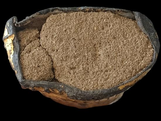 ....ตะกั่วเก่าๆ ....มีชาดแดงที่ฐาน ตามแบบพระบูชาทั่วไป...เดิมๆ ได้อายุ...ดินไทยแน่นเกือบเต็ม ...จัดเข้าชุดพระบูชาชุดเล็กได้ครับ น่าอนุรักษ์...ตักกว้าง 1.5 นิ้ว สูง 3 นิ้ว..