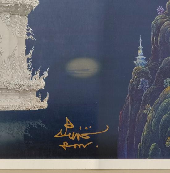 ขออนุญาติท่านอาจารย์เฉลิมชัยโฆษิตพิพัฒน์ขอแบ่งปันภาพพิมพ์ที่ระลึกถวายพระเมรุวัดร่ิงขุ่น6มีนาคม57สภาพสวยงามขนาดสูงแนวตั้ง32เซนแนวนอน48เซนพร้อมลายเซนต์ครับ