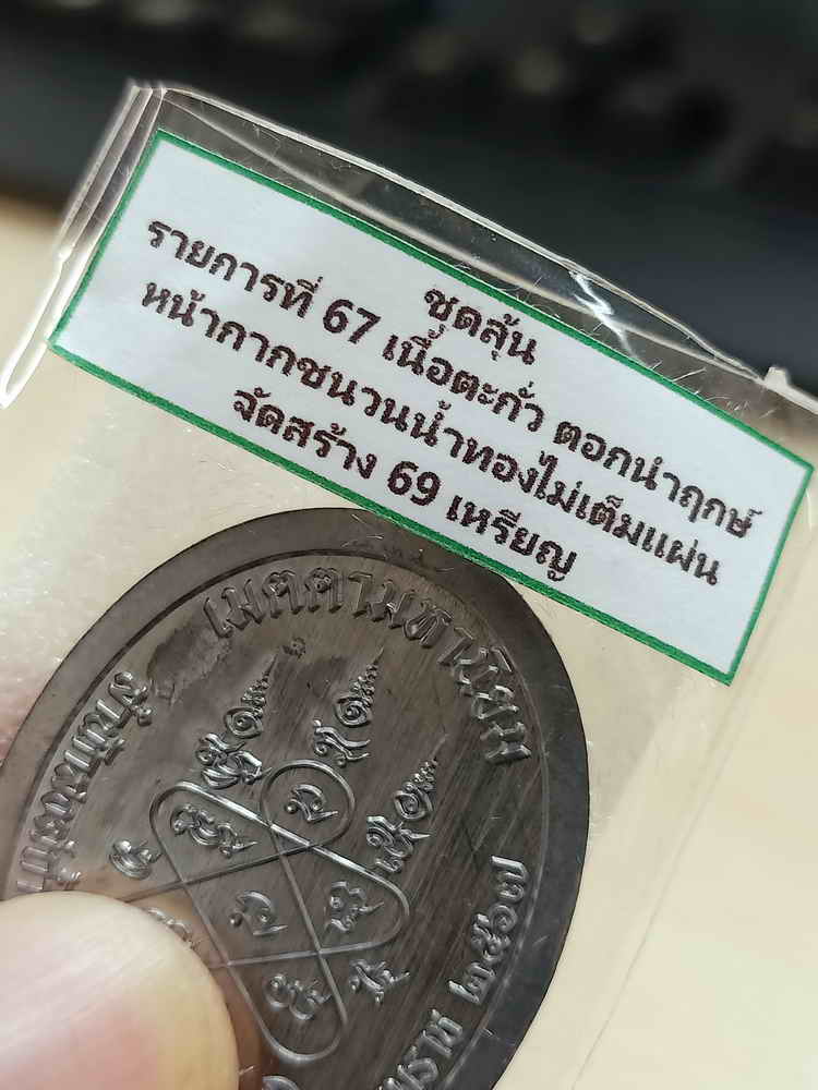 วัดใจ 100 เหรียญชนะจน พ่อท่านจุล สำนักสงฆ์ถ้ำเหมา นครศรีธรรมราช ปี 2567 ตะกั่ว หน้ากากชนวน หมายเลข 39 สร้าง 69 เหรียญ กล่องเดิม