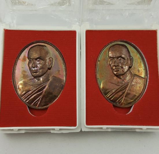 เหรียญหันข้างวัดป่าสุทธิภาวันเนื้อทองแดง 2องค์คู่เลยครับหนองปลาไหล บางละมุง ชลบุรี ผิวสวยกล่องเดิม