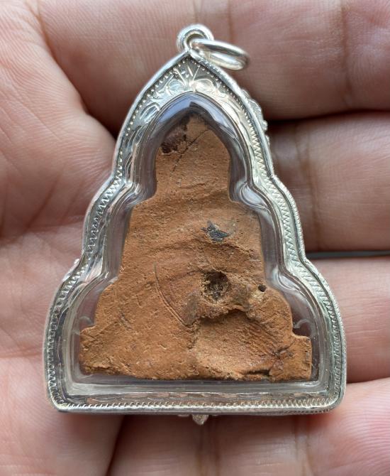 หลวงพ่อโต กรุบางกระทิง สวยๆเลี่ยมเงินสั่งทำแกะมือหนาๆ หัว พญาครุฑ