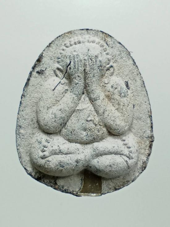 เคาะเดียว พระปิดตายันต์ดวงเล็ก เนื้อผงใบลานแช่น้ำมนต์ (คราบน้ำมนต์บาง ๆ) สอดตะกรุดเงิน ผสมพระเกศา สมเด็จพระญาณสังวร(เจริญ สุวัฑฒโน ปธ.๙) วัดบวรนิเวศวิหาร ๒-๓ ตุลาคม ๒๕๒๓ |
