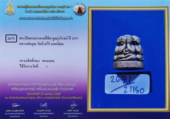 พระปิดตาสี่ทิศ รุ่นคูณรุ่งโรจน์ เนื้อนวโลหะ ปี 2537 พร้อมใบประกาศ ติดรางวัลที่ 1 งานศรีราชา(งานสมาคมฯ)