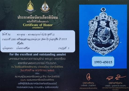 เหรียญเสมาหลวงพ่อรวย วัดตะโก รุ่นอายุยืน ปี 2555 เนื้อเงิน ติดรางวัลที่ 3 งานประกวดจังหวัดพิจิตร (งานสมาคมฯ)