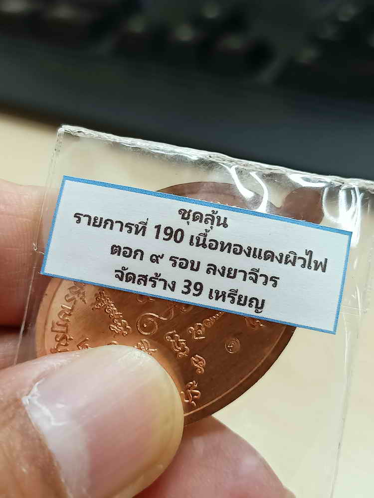 วัดใจ 100 เหรียญเจริญพรบน รุ่นแรก พระอาจารย์อนุชา อนุชาโต วัดโพธิ์ราฎร์บูรณะ จ.ราชบุรี 2567 ทองแดงผิวไฟ ตอก 9 รอบ ลงยาจีวร หมายเลข 34 สร้าง 39 กล่องเดิม |