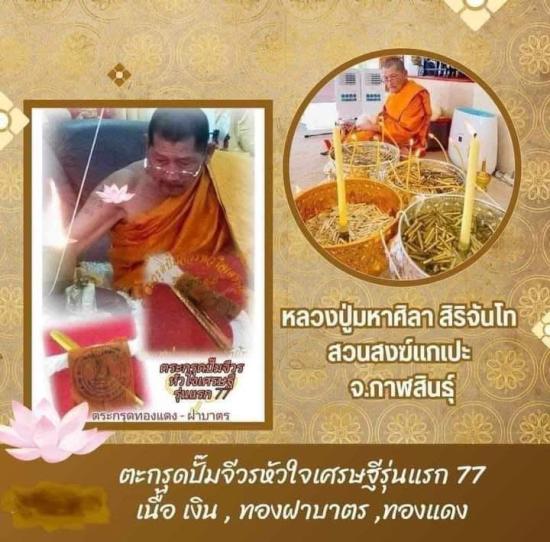 ตะกรุดปั๊มจีวรหัวใจเศรษฐี รุ่นแรก อายุวัฒนมงคล 77 ยุคสวนสงฆ์แกเปะ(ยุคต้นๆ) หลวงปู่มหาศิลา สิริจันโทปลุกเสกสุดขลัง เป็นตะกรุดเนื้อเงิน ขนาดยาว 2.5 นิ้ว ปัจจุบันวัตถุมงคลหลวงปู่ศิลาขยับราคาขึ้นทุกรุ่น พุทธคุณประสบการณ์ของพระเครื่องของท่านยิ่งมากและไม่ธรรมดา จนถึงประสบการณ์ที่ผู้บูชานับถือได้ประสบพบมากับตัวเองแล้วนั้นด้วย วัตถุมงคลหลวงปู่ศิลาล้วนมีประสบการณ์มากมาย ห้ามพลาดด้วยประการทั้งปวงแล้วครับ รับประกันชั้นหนึ่งครับ อนาคตพระหลักยอดนิบมของสายนี้แน่นอนครับ |