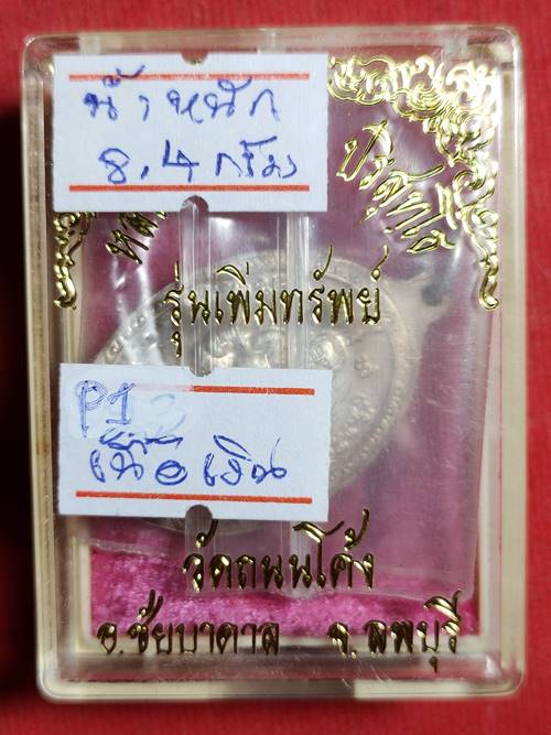 เหรียญหลวงพ่อคูณ ปริสุทโธ รุ่น เพิ่มทรัพย์ ออกวัดถนนโค้ง ปี 2536 เนื้อ เงินหลังพระสังกัจจายน์ มีจาร เคาะเดียวแดง