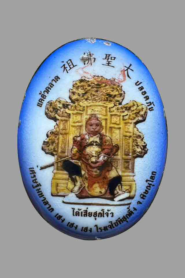 ล็อคเก็ตองค์เทพเจ้าเห้งเจีย (ไต่เซี่ยฮุกโจ้ว) ฉากน้ำ ด้านหลังอุดผงมวลสาร โรงเจไซทีฮุกตึ้ง พิษณุโลก ปี2562 |