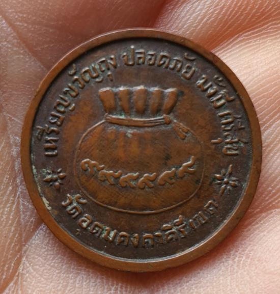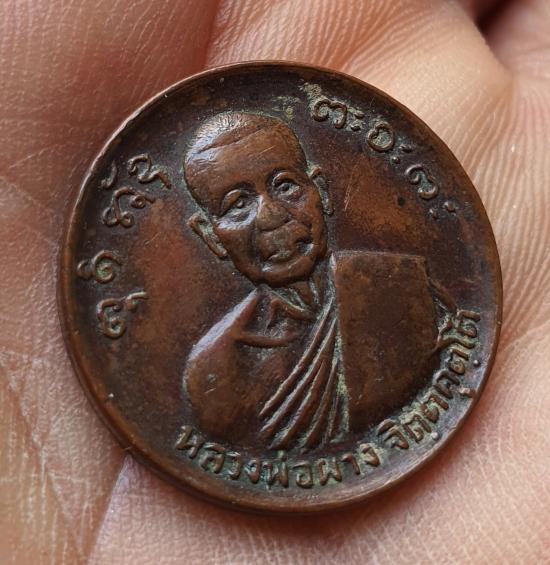 วัดใจเหรียญขวัญถุงหลวงพ่อผาง เนื้อทองแดงรมน้ำตาล ปี2518 |