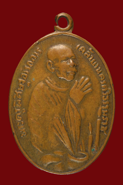 เหรียญไหว้ข้างหลวงพ่อคล้าย ปี 2502 เนื้อทองแดง วัดวังตะวันตก จ.นครศรีธรรมราช |