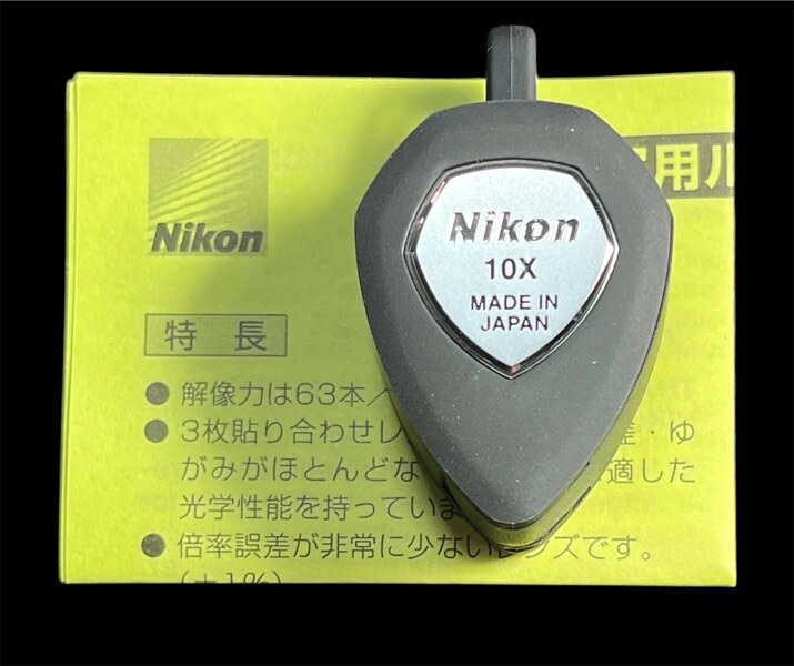 กล้อง Nikon Loupe 10X แท้ พึ่งจะซื้อมาจากญี่ปุ่น ของใหม่ แค่แกะออกมาถ่ายรูปแล้วใส่กล่องคืนกลับ(กล้องสีดำ แต่ถ่ายออกมาสีไม่ดำเหมือนของจริง) |