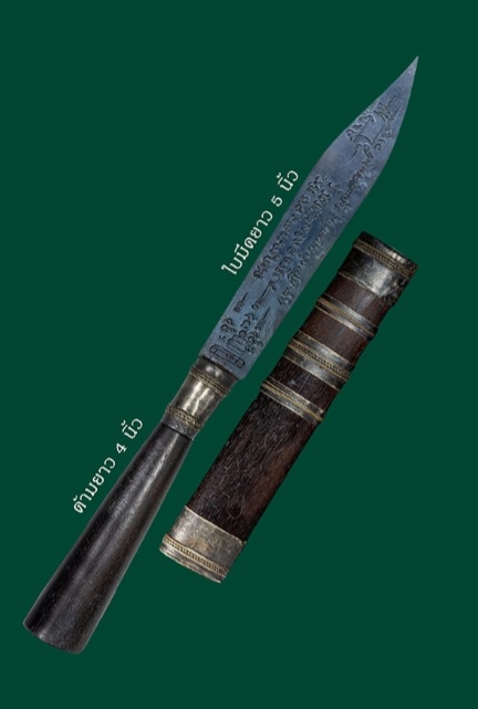 มีดหมอหลวงพ่อเสือดำ วัดเขาดิน จ.สุพรรณบุรี ด้ามไม้ ฝักไม้ |