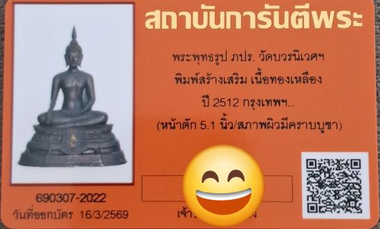 พระพุทธรูป ภปร.วัดบวรนิเวศฯ พิมพ์สร้างเสริมเนื้อทองเหลือง ปี 2512 กรุงเทพฯ หน้าตัก 5.1 นิ้ว