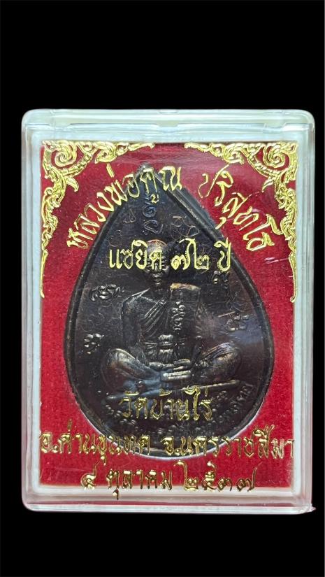 เหรียญหยดน้ำใหญ่ หลวงพ่อคูณ วัดบ้านไร่ ปี2537 หลังหนุมานเชิญธง (ตอกหมายเลข 72) มีจารสวยๆครับ เ
