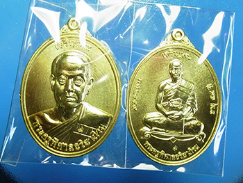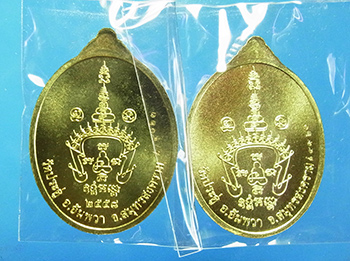 2 เหรียญเจริญพร พระมหาสุรศักดิ์ วัดประดู่พระอารามหลวง จ.สมุทรสงคราม ปี 2558 เนื้อทองฝาบาตร