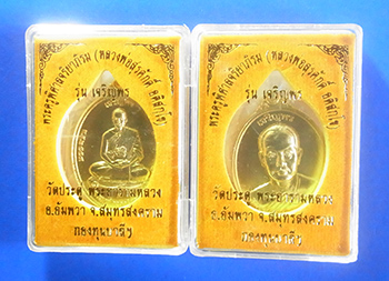 2 เหรียญเจริญพร พระมหาสุรศักดิ์ วัดประดู่พระอารามหลวง จ.สมุทรสงคราม ปี 2558 เนื้อทองฝาบาตร สภาพออกจากวัด เก็บอย่างดี พร้อมกล่องเดิมครับ (1)