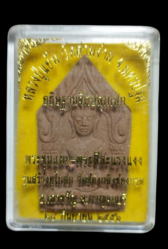พระขุนแผนหลังพระสีสะแลงแงง ฝังตะกรุด 2 ดอก รุ่นสร้างอุโบสถวัดช่องกลิ้งช่องกรด อ.เลาขวัญ จ.กาญจนบุรี หลวงปู่แย้ม วัดสามง่าม จ.นครปฐม อธิษฐานจิต กล่องเดิม
