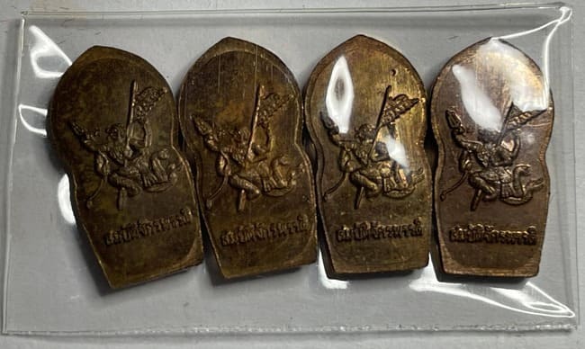 ปรกใบมะขามองค์พ่อจตุคามรามเทพ รุ่น สมบัติจักรพรรดิ์ ปี2549 เนื้อทองแดง 4 องค์ สภาพสวย