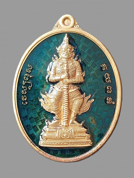 เหรียญท้าวเวสสุวรรณ รุ่นเจ้าสัวกรุงธนบุรี วัดอรุณราชวราราม ปี 2559 แยกชุดกรรมการ No.927 ลงยาสีน้ำเงิน สภาพใช้พร้อมกรอบเงินผสมลงยา |