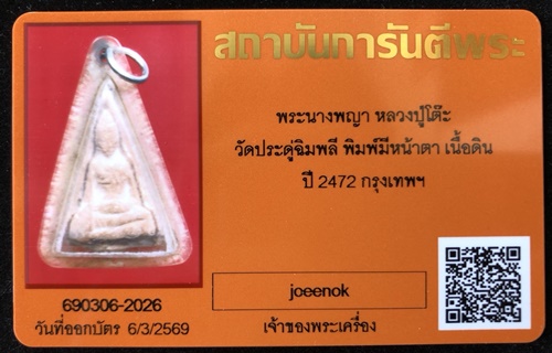 พระนางพญา หลวงปู่โต๊ะ วัดประดู่ฉิมพลี พิมพ์มีหน้ามีตา เนี้อดิน ปี 2472 จ.กรุงเทพฯ สวยเดิม เลี่ยมเก่า มาพร้อมบัตรรับรองครับ