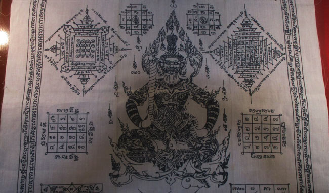 ผ้ายันต์ ท้าวเวสสุวรรรณ วัดเจดีหอย จ.ปทุมธานี พิธีภาณยักษ์ใหญ่ ๕๓ ครับ (พระบ้าน ครับ) |
