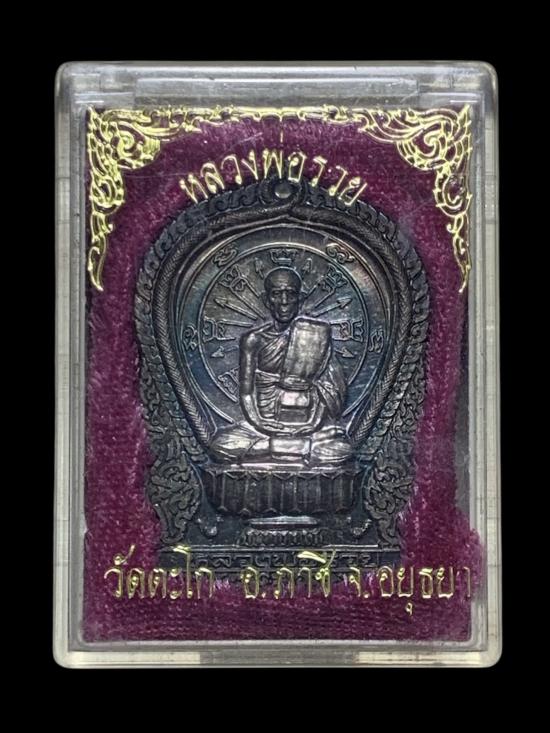 ((เคาะเดียวแดง))เหรียญนั่งพานรุ่นแรก หลวงพ่อรวย วัดตะโก เนื้อเงิน ปี2539 สวยๆผิวเดิมรุ้งๆ พร้อมกล่องเดิม
