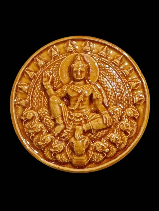 #แดงเคาะแรก# ท้าวจตุคามรามเทพ เนื้อกระเบื้องเคลือบสีเหลือง รุ่นราชามหาเศรษฐี บารมีพระธาตุ วัดพระมหาธาตุวรมหาวิหาร จ.นครศรีธรรมราช ปี 2550