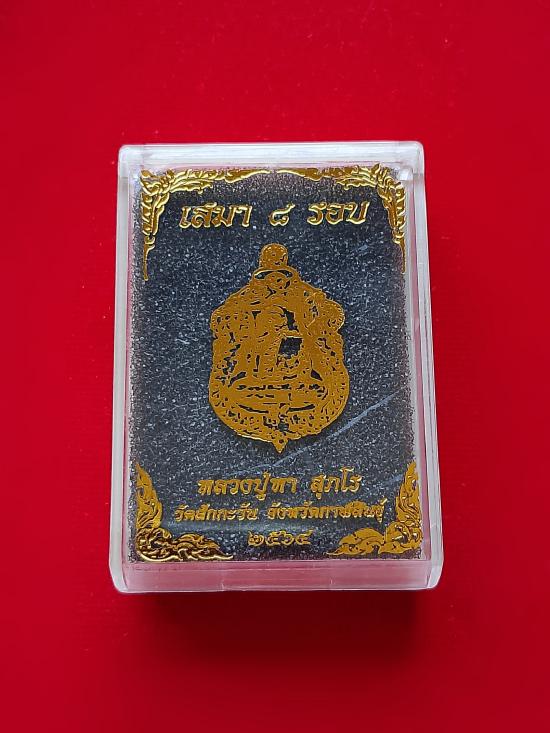 งานประกบ3ชิ้น เลข 444 เคาะแรก!! เหรียญเสมา๘รอบ หลวงปู่หา สุภโร วัดสักกะวัน จ.กาฬสินธุ์ ปี๖๔ เนื้อปลอกลูกปืนผิวรุ้ง หน้ากากอัลปาก้าลงยาจีวร ตอกโค๊ต จีน เลข ๔๔๔ สวยงามผิวเดิมจมูกโด่ง พร้อมกล่องเดิม