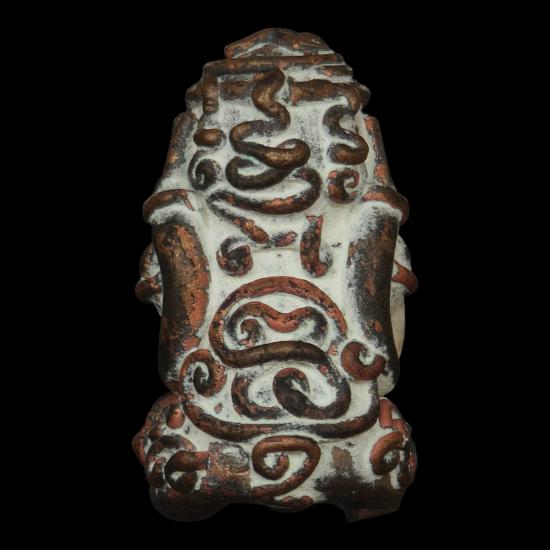 พระปิดตายันต์ยุ่ง พระแจกในพิธี (กล่องเหลือง) รุ่น รวย นะ ๙ ดี พระอาจารย์ต้อม วัดท่าสะแบง ร้อยเอ็ด (ปั้นต้นแบบองค์พระ โดย พระอาจารย์ดิเรก วัดหนองทราย) เนื้อชนวนสัมฤทธิ์โบราณ หมายเลข ๑๒๕๙ ถวายงาน โดย ป๋